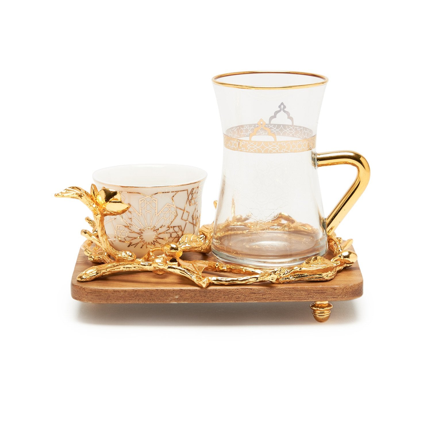 • Set Compositions: 6pcs Cawa Cup, 6 pcs Tea Cups, 6 pcs Wooden Base, 1 pc Tray